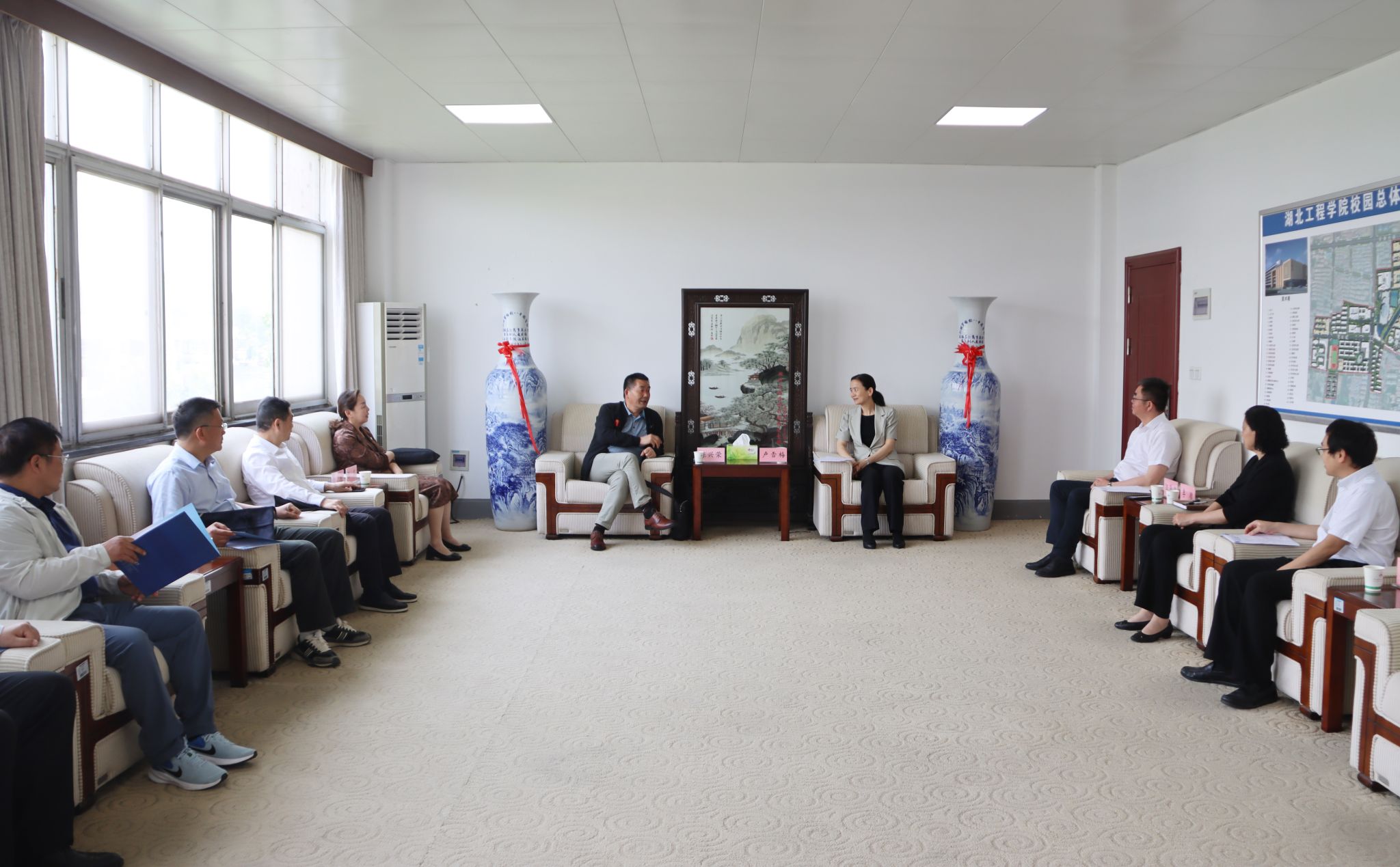 5月15日,湖北省科学技术协会正厅长级领导干部陈兴荣、调研宣传部部长柳胜,湖北省科技厅信息院科技宣传中心主任邓坤烘和华中农业大学教授李家奎一行到我校调研。孝感市政协副主席、市科学技术协会主席陈实,市科学技术协会学会部部长盛丹,学校党委书记卢雪梅、校长汪海波、副校长李渺出席调研座谈会。