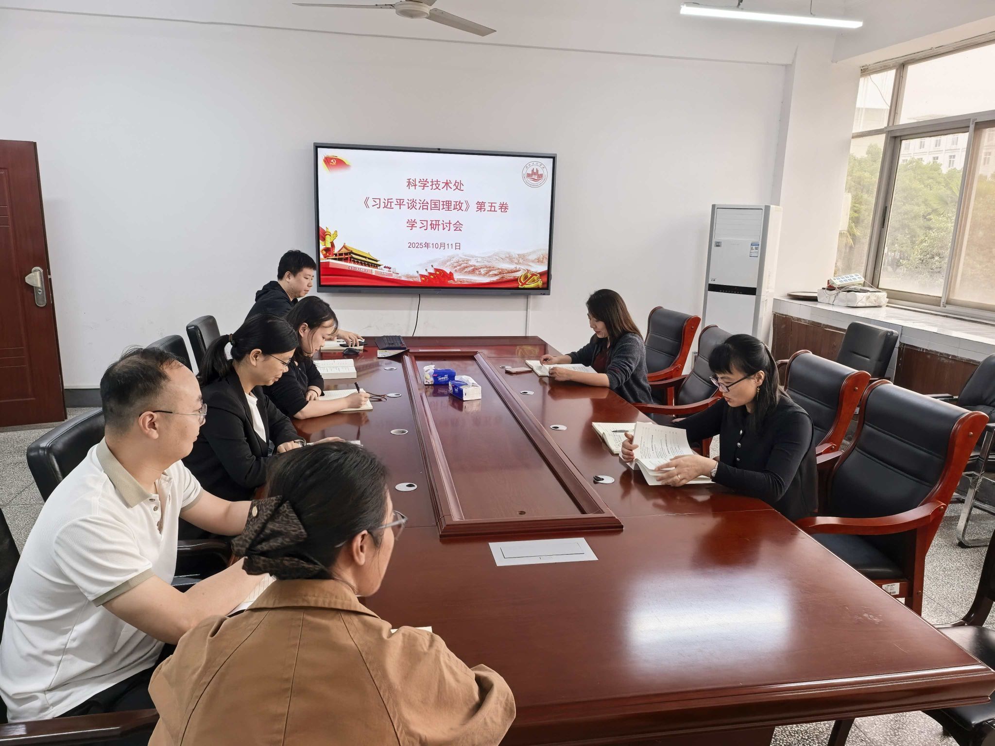 为深入贯彻落实党的创新理论,推动科技工作高质量发展,10月11日,科学技术处组织召开《习近平谈治国理政》第五卷专题学习研讨会。会议由科学技术处副处长黄丽珍主持,部门全体人员参会。