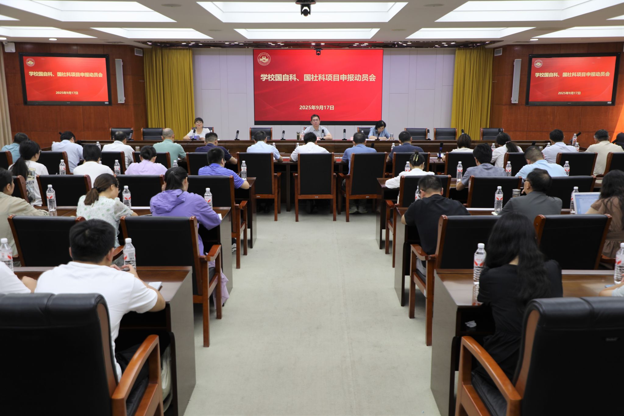 9月17日,学校在明德楼六楼会议室召开2026年国家基金项目申报动员会。党委副书记、校长汪海波,副校长李渺出席会议,各教学学院院长、分管科研副院长、教师代表及科技处相关工作人员参加会议。会议由李渺主持。
