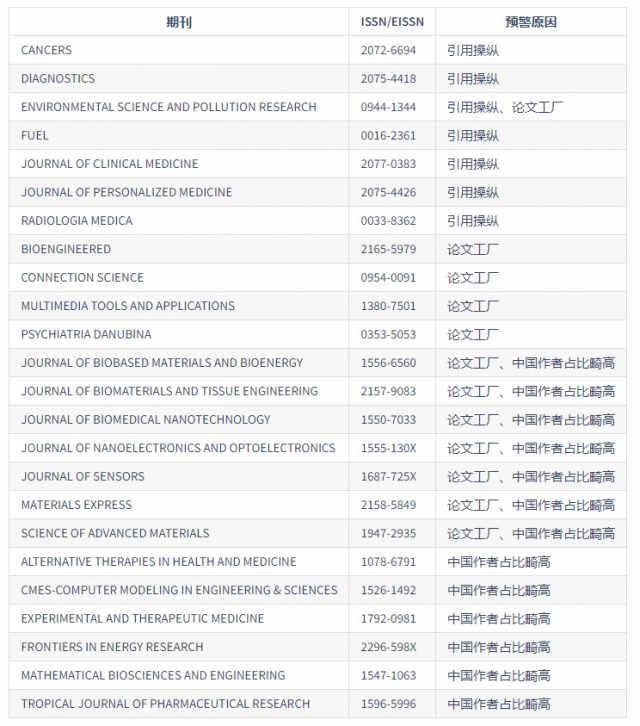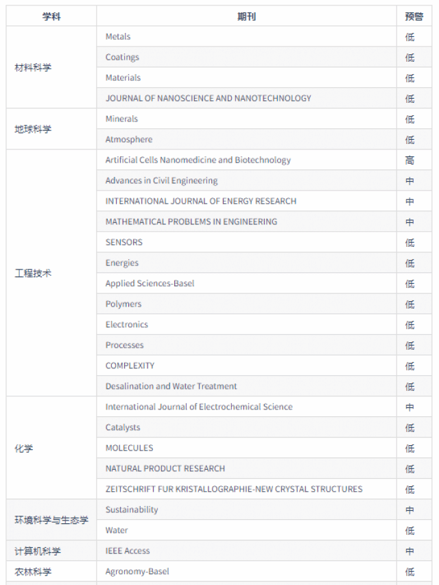 2025年中国科学院预警期刊名单