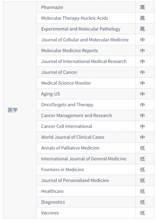 2021年《国际期刊预警名单(试行)》: