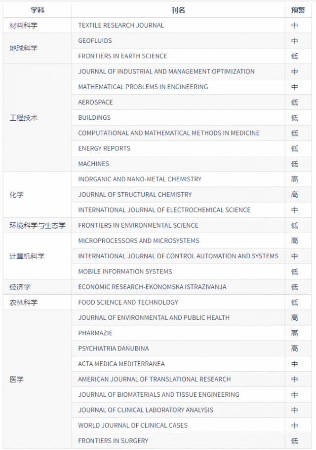 2)关于《国际期刊预警名单》的使用,需要特别指出的是,不应该把多年累积期刊列表合并使用。曾经进入预警名单的期刊在经过整改并取得显著成效之后,会被移出下年度预警名单,不再是预警期刊。