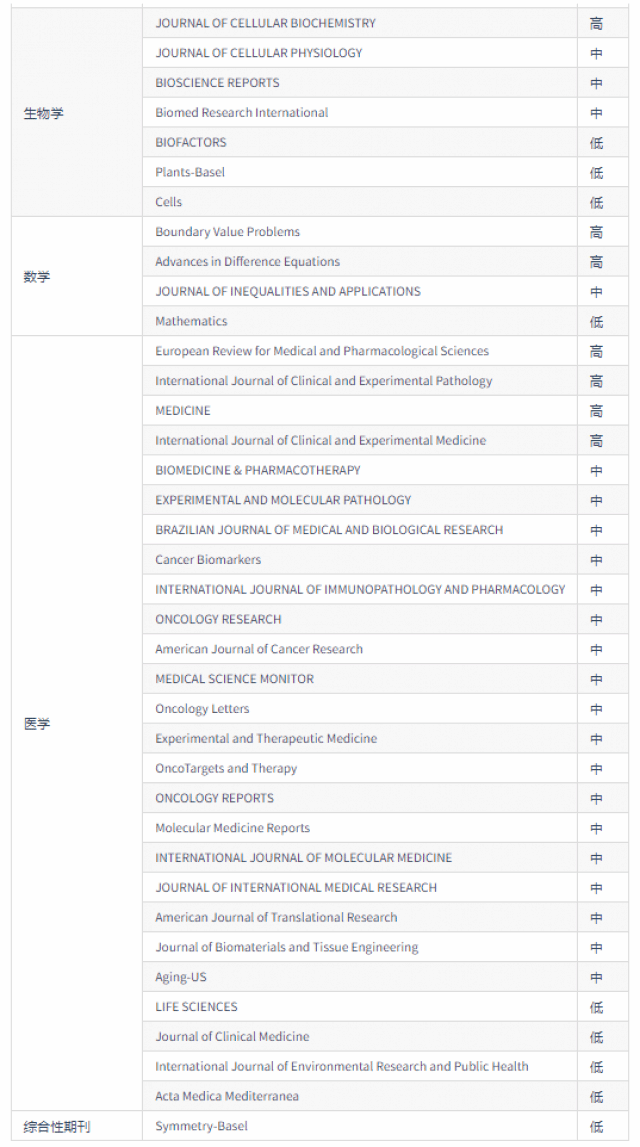 2020年《国际期刊预警名单(试行)》: